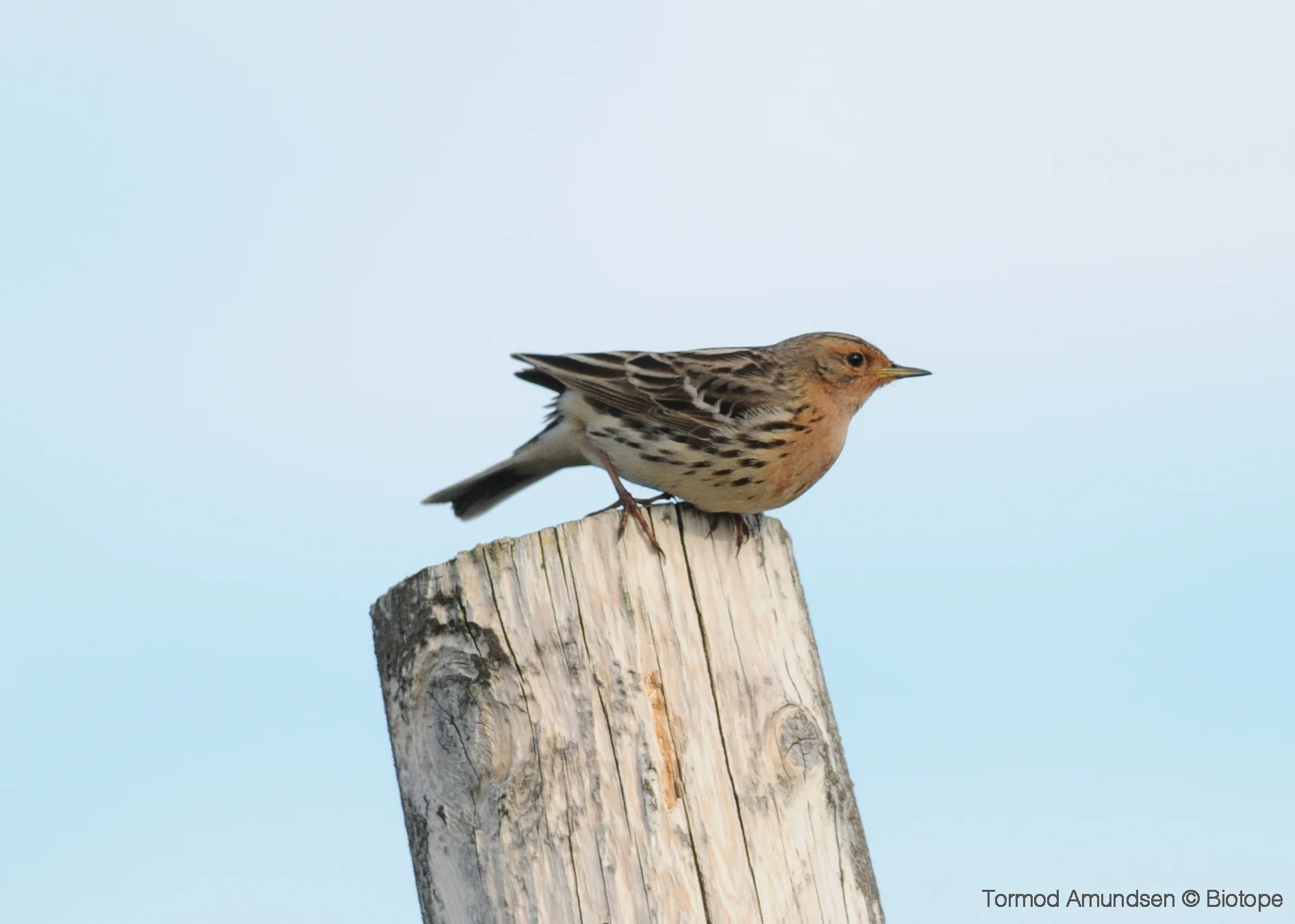 In addition to the seabirds, Hornøya supports a population of pipits on the grassy areas of the island. Three species breed here, the ubiquitous Meadow Pipit, the Rock Pipit and the rarer Red-throated Pipit, an Arctic specialist. All three species nest on the ground, hidden deep in the long grass and vegetation. This is another good reason why visitors must stay on the marked paths. Pipit nests may be trodden on if visitors start walking over the grassy areas. All three species are summer migrants to Hornøya, spending the winter further south in Europe and, in the case of the Red-throated Pipit, Africa.