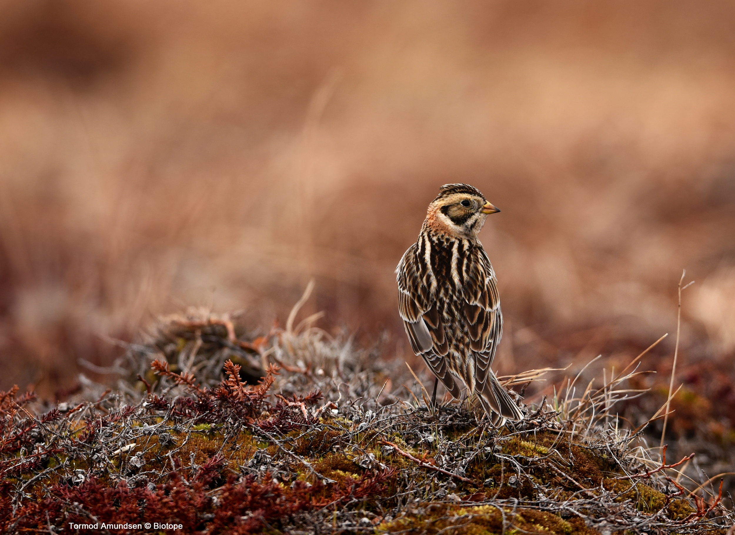 Hornøya in autumn provides a welcome rest stop for scores of migrating birds headed southwards for the winter. Redwings, Bluethroats, Twite, Common Redpolls, Lapland Buntings, Snow Buntings, pipits and even migrant geese use the islands as a refuge, feeding up on the seeds, berries and insects before their journey. Some of the smaller migrants may feed in the empty nests of seabirds, where some insects may still survive. Adverse weather could create a "fall" on the island, where rainy conditions force large numbers of migrating birds to seek shelter. One minute the island can be devoid of birds, the next they appear to be everywhere.