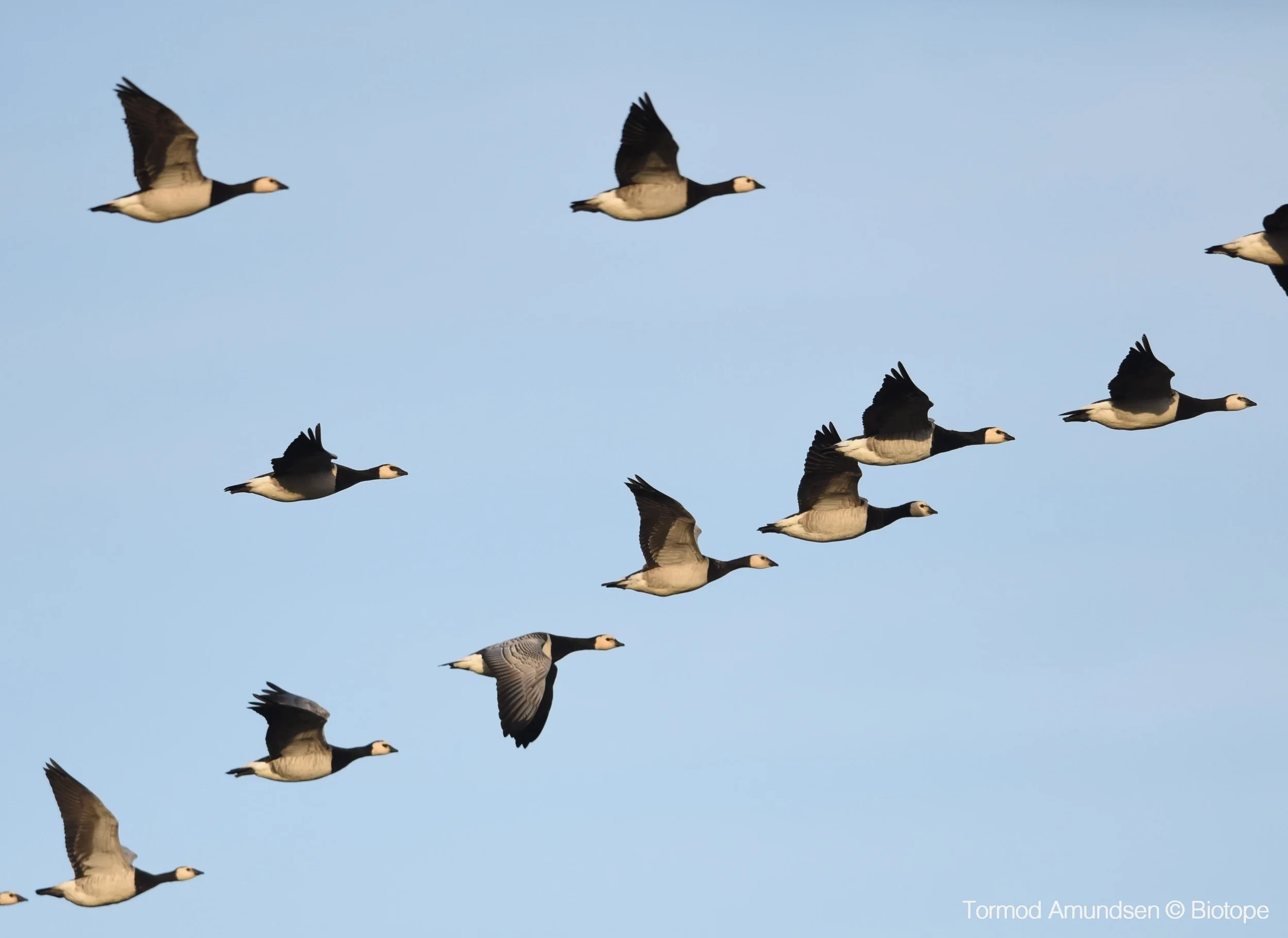 On the on the flat vegetated area of Hornøya’s eastern side, small numbers of Greylag and Barnacle Geese breed amongst the gull colony. Greylag Geese are common across Varanger and the few pairs which breed on the island are safe from foxes and human disturbance. The smaller Barnacle Geese (pictured) migrate through Varanger every year between their Russian breeding grounds and winter quarters on the North Sea coast. However, a few pairs choose to stay in Norway for the summer and breed on Hornøya! These are the only breeding Barnacle Geese in Finnmark.