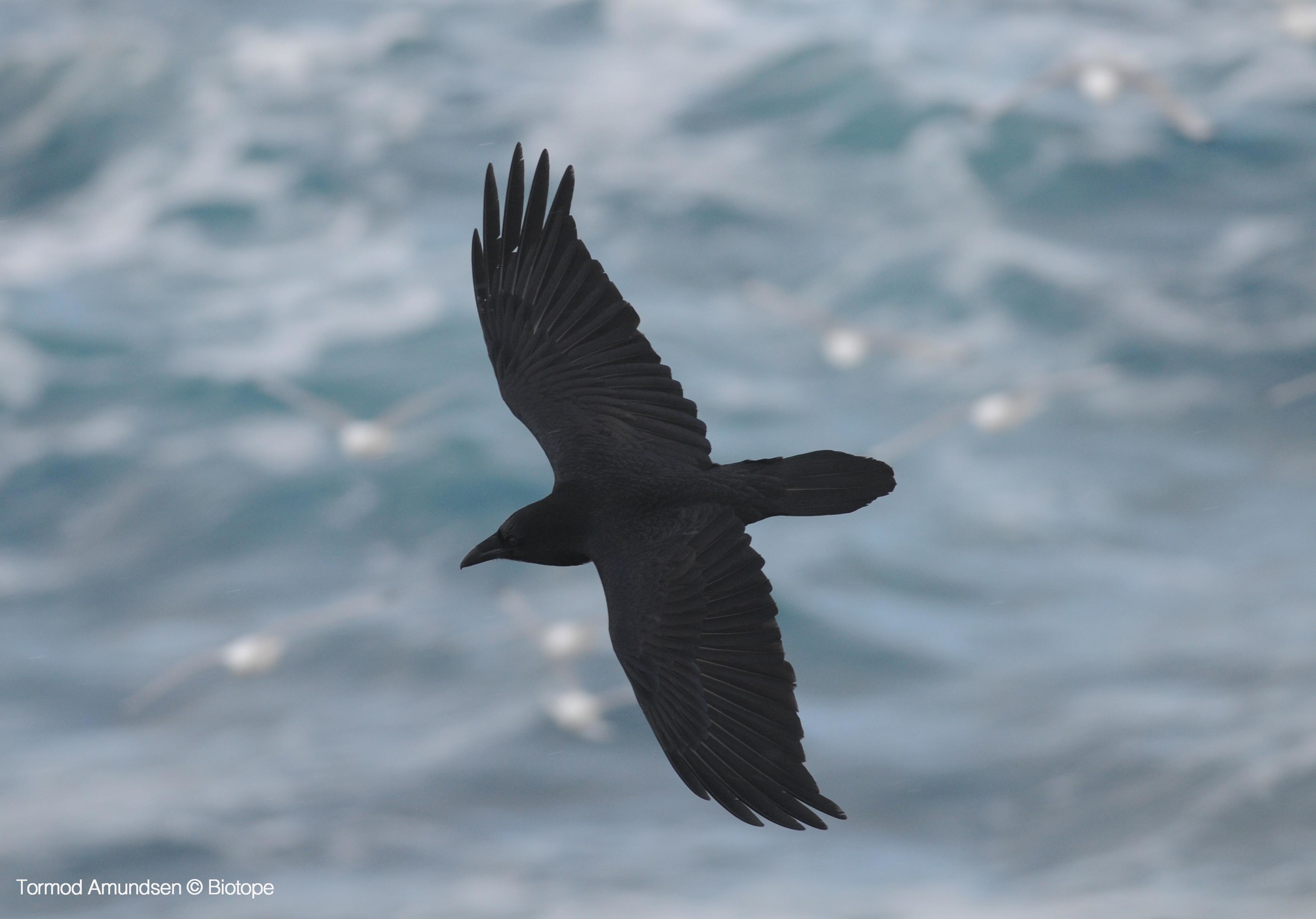 Ravens can be seen patrolling Hornøya in pairs or small flocks, often performing areal acrobatics such as rolling upside down or chasing each other, seemingly just for fun. They are opportunistic omnivores, raiding seabird nests for eggs and young chicks, as well as feeding on carcasses and human food waste. They breed on the cliff, using seaweed and sticks they find washed up to create a messy nest. Ravens one of the world’s most intelligent birds, shown to have a brain-to-weight ratio just below that of a human’s.