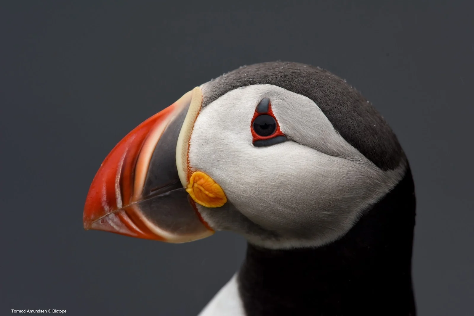 One of the famous faces of Hornøya. Over 7.5 thousand pairs of puffin breed inside burrows on Hornøya’s grassy slopes and clifftops. Each pair mates for life. After a winter spent at sea, the puffins return to Hornøya in March, old mates reuniting at their previous nesting site. Those puffins without mates or a nest site begin digging their burrows, using their beaks as shovels. Nesting deep within in a burrow means their eggs and chicks are relatively safe from predators such as gulls. The right site is imperative to the survival of puffin chicks. Fights frequently break out between newly-arrived puffins over the best nesting spots.