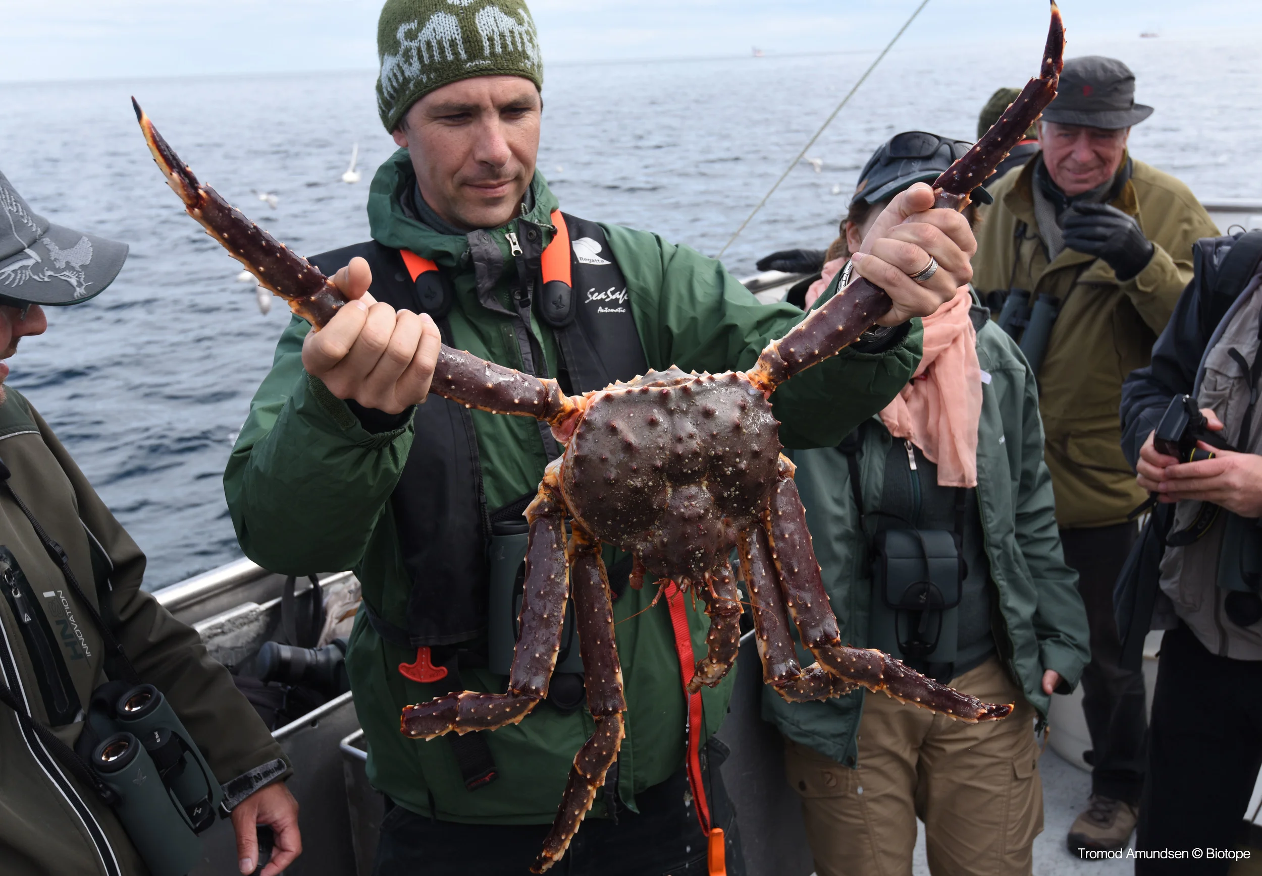 King crabs are not native to Varanger. They were brought from the Pacific Ocean by the Russians during the 1930s and released into the Barents Sea around Murmansk. This was during the years of the Soviet Union under Josef Stalin, who wanted a new and valuable catch for Soviet fishermen. Since then the crabs have spread to Norway and become a worrying environmental concern. They eat almost anything they comes across and appear to have a negative impact on the local ecosystem. Thousands of tonnes of king crabs are caught every year in Varanger for their delicious, expensive meat.